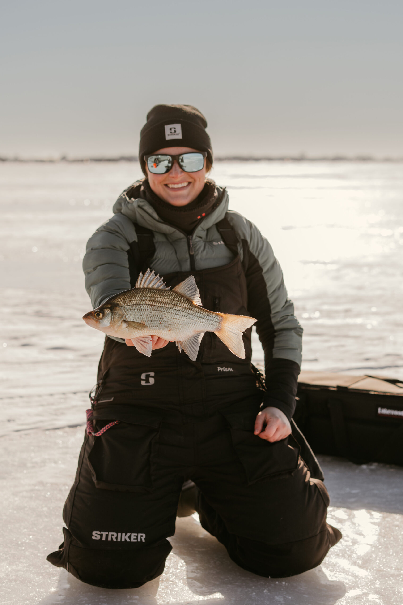 Jay and I spent most of the day breaking away, trying to get into no-man’s land and away from the crowds. Early on and far away from people, Jay had a big walleye come unpinned right at the hole, and that moment stuck with us. Not long after moving back to reconvene with the group, Jay iced a small white bass, which at least confirmed fish were around, even though the bite stayed slow and nothing really came together right away.