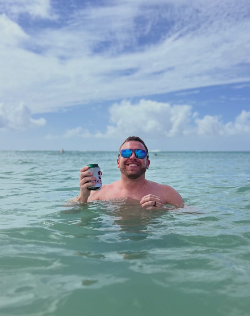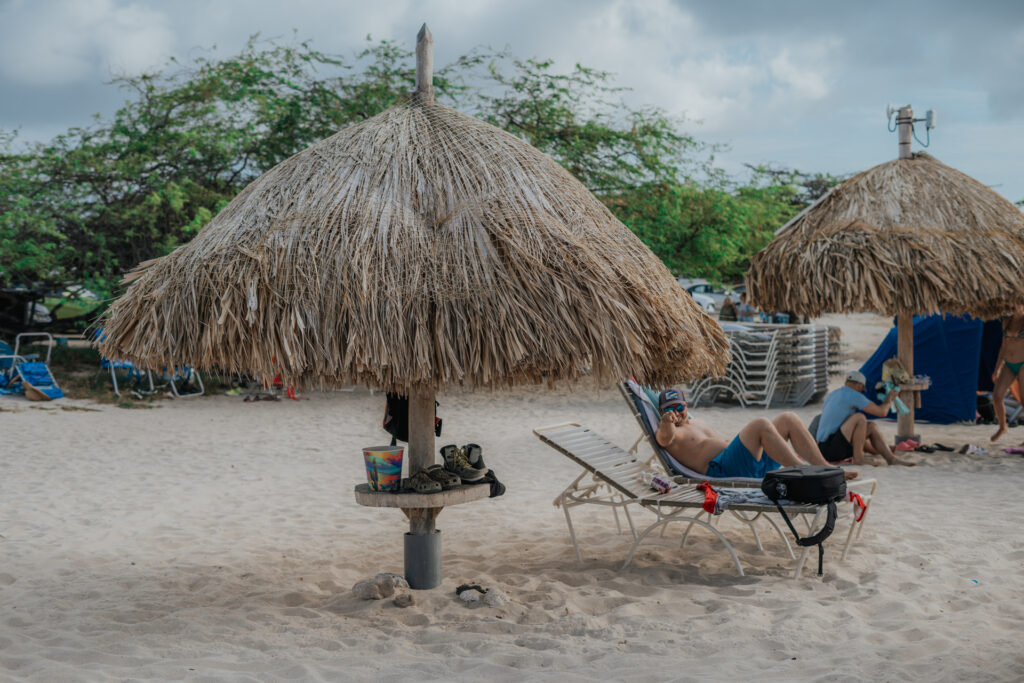 Through the bartender’s cousin, we got hooked up with a ride over to Eagle Beach, and that is where the day really turned. We rented a lil’ cabana set up for $35, got a bucket of Presidente beers, and settled in for what ended up being one of the best afternoons of the trip. We swam, laid in the sun, talked, tanned, and just enjoyed being exactly where we were. Aruba is truly stunning. The water that day had this electric green-blue color to it because of the high winds stirring everything up, and it was still so beautiful it almost didn’t look real. We had nowhere to be, nothing to fix, and no reason to rush. It was just the two of us, and after the way the day had started, that simplicity ended up being the best part.