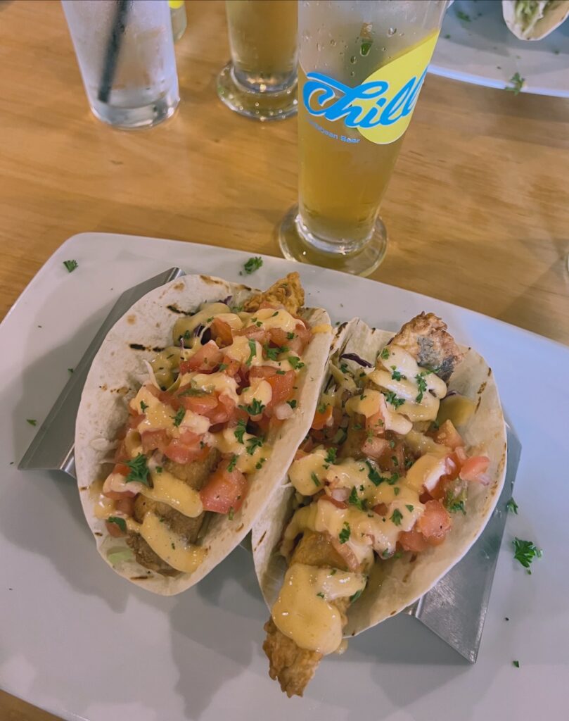 Eventually we looked at each other and decided it was time to head back. We split a minivan taxi with a group of people for five dollars apiece, made our way back to the port, and I finally got my Aruba magnet. We ended up having dinner at Anker Fish Company, where Jay had fresh shrimp tacos and I had fresh red snapper tacos, and both were excellent. We paired them with Chill beer, which was light and crisp and perfect after a full day in the sun. That whole meal was one of those little closing notes that just tied everything together.