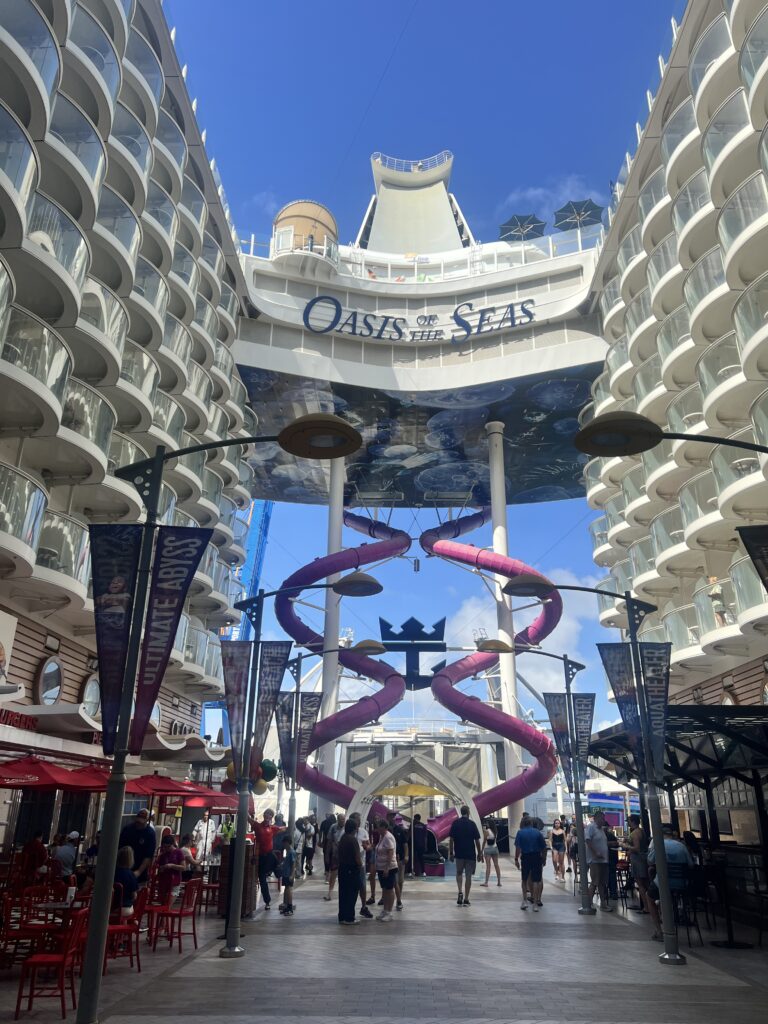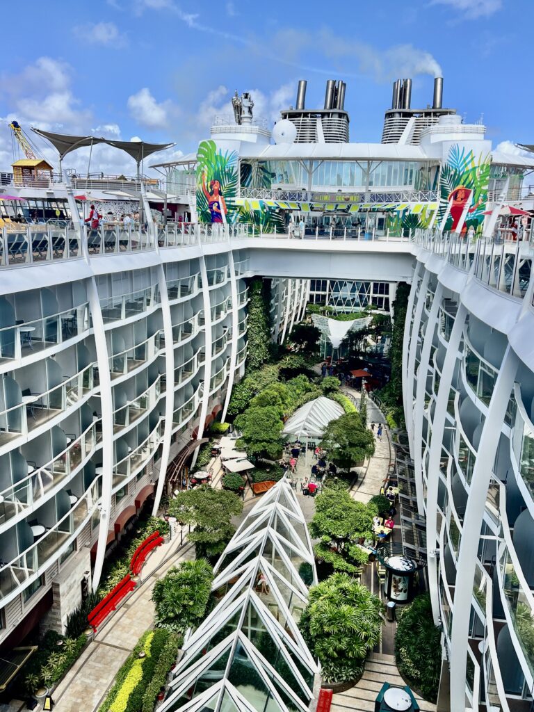 The first thing that hit me was just how massive it is. Our first cruise back in 2018 was on Serenade of the Seas, which now feels tiny in comparison. Oasis is in a completely different category. It doesn’t even feel like a boat. It feels like a floating city and you realize that immediately.