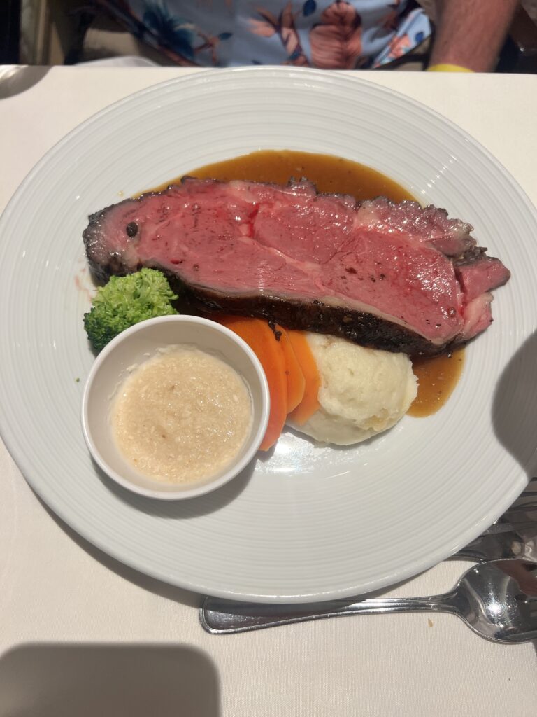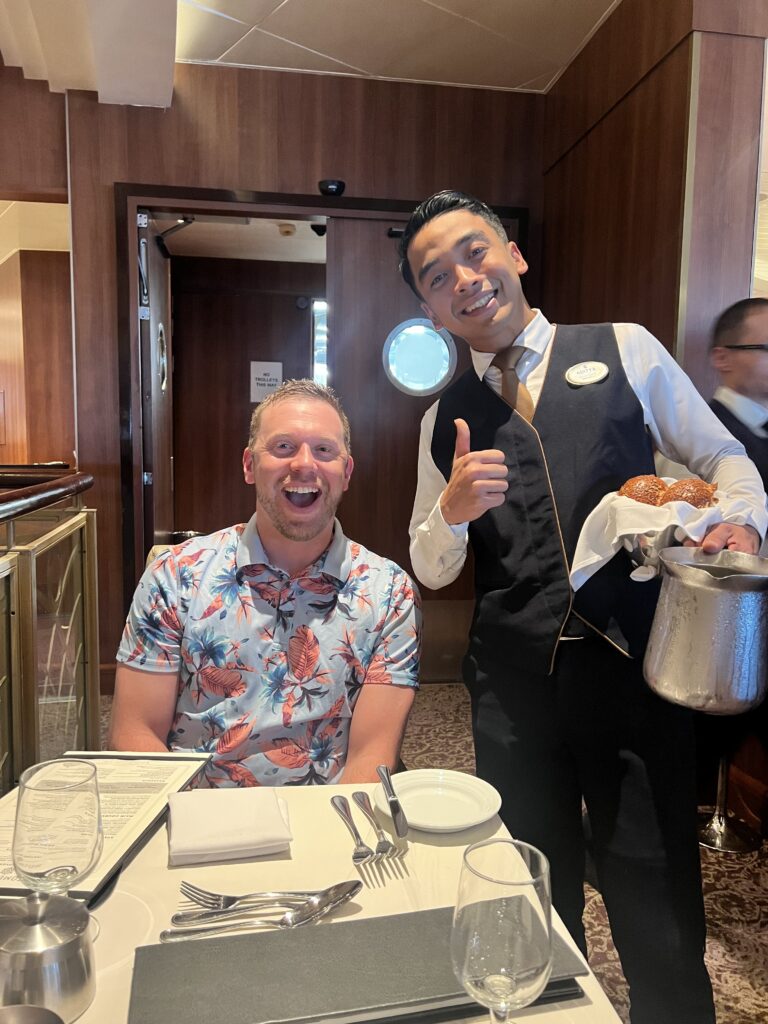 Eventually we made our way to dinner in the Main Dining Room, and that was the moment it fully shifted for me. Sitting down, not rushing, not thinking about timing or logistics, just being there. That’s when it finally felt like vacation.