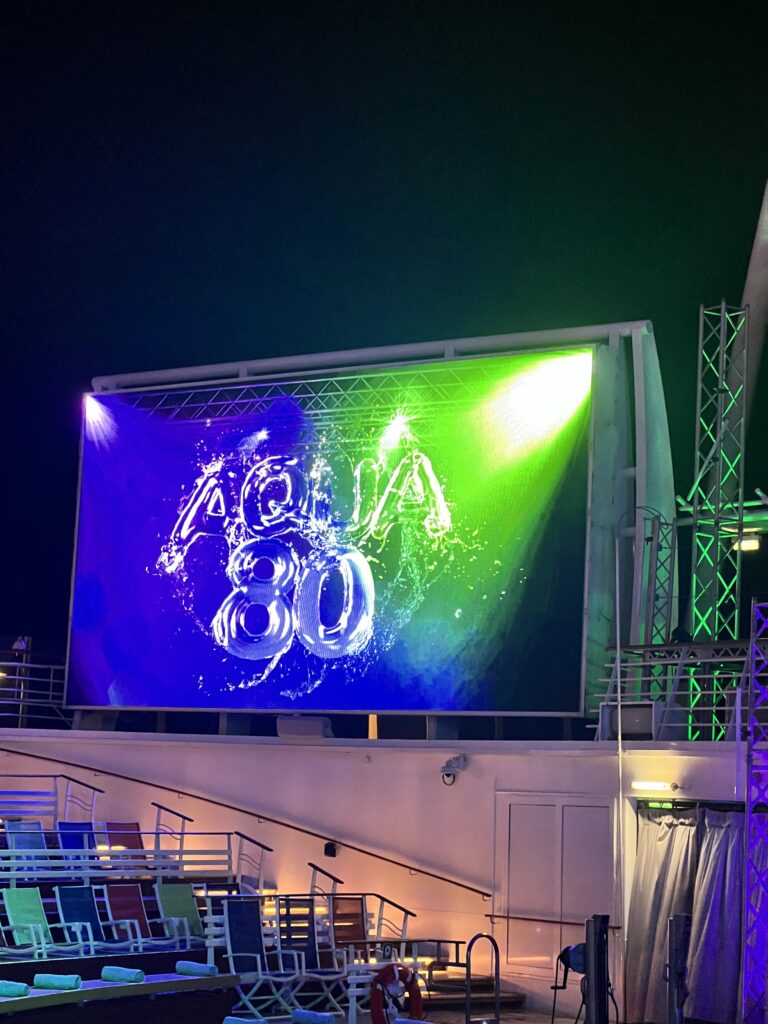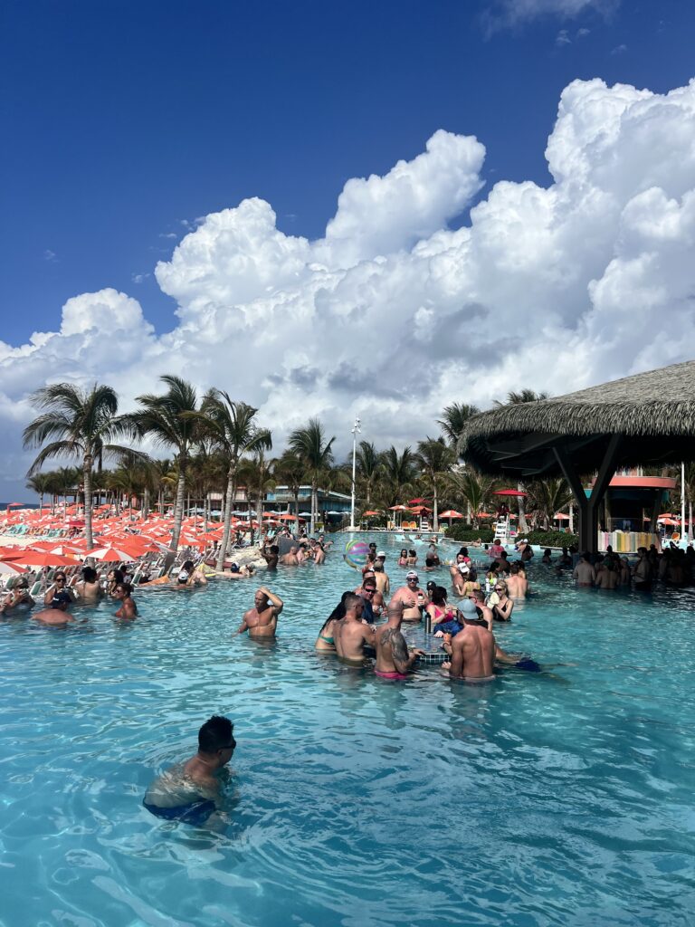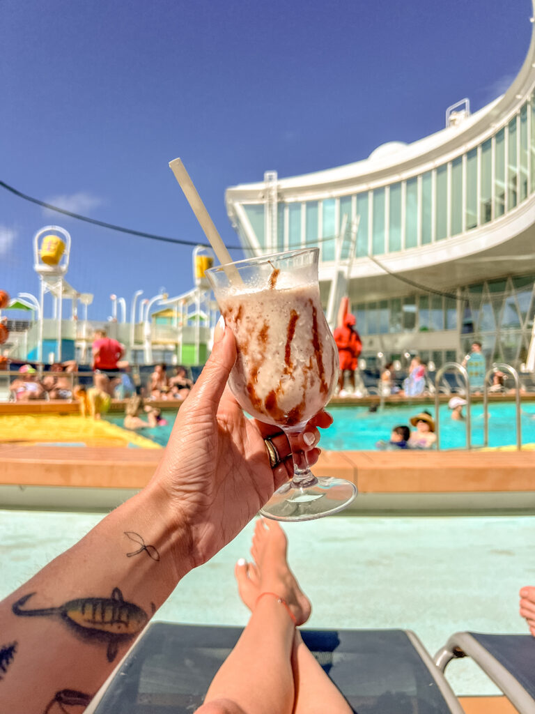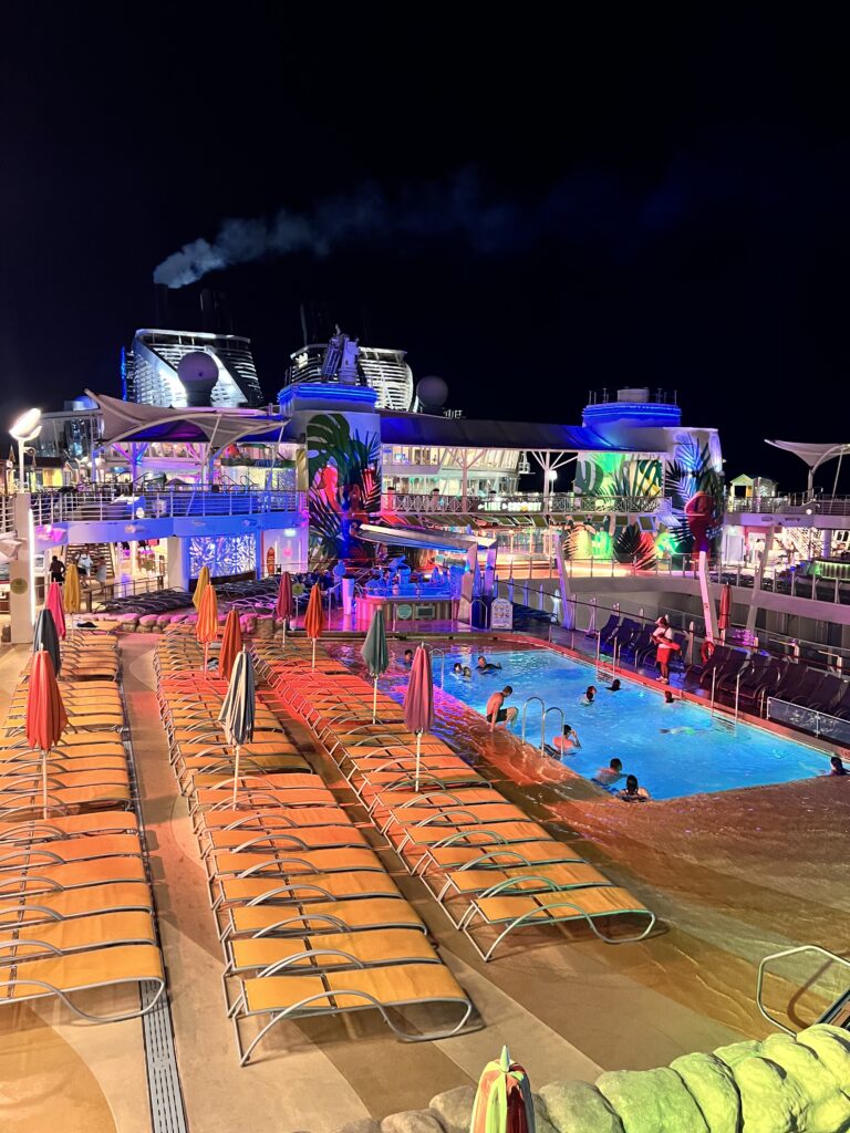 From there, we did exactly what you’re supposed to do on day one. We found chairs on the pool deck and didn’t move for a while. Drinks in hand, band playing for the sail away party, sun hitting just right, it finally felt like the trip we had imagined when we booked it.