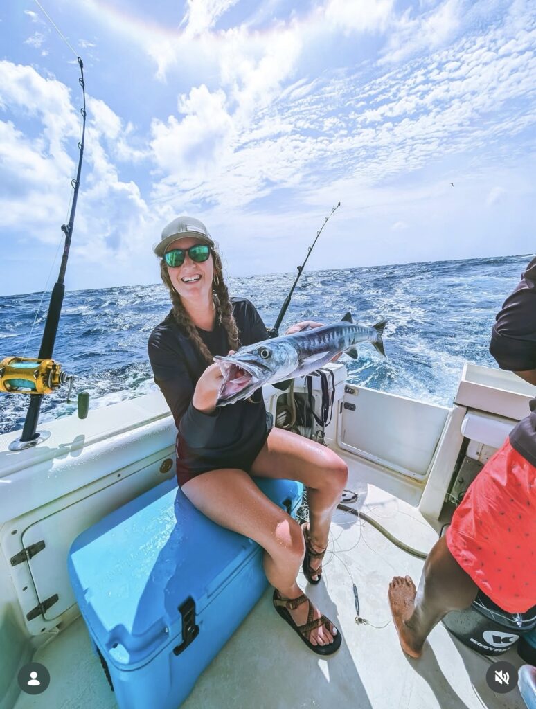 I hooked into a barracuda using something called a rosary, which is basically like hand-lining a heavy rig, almost like pulling in a giant tip-up line by hand. It was such a cool experience, but also way more physical than I expected. Between the current and the movement of the boat, it turned into a full-body workout just trying to bring that fish in.