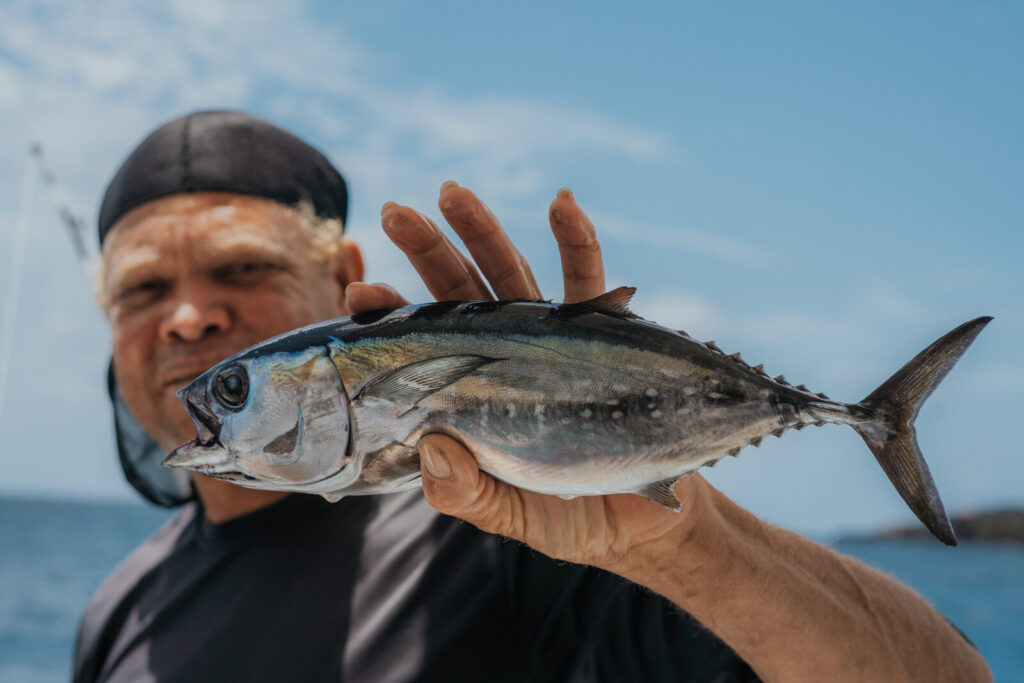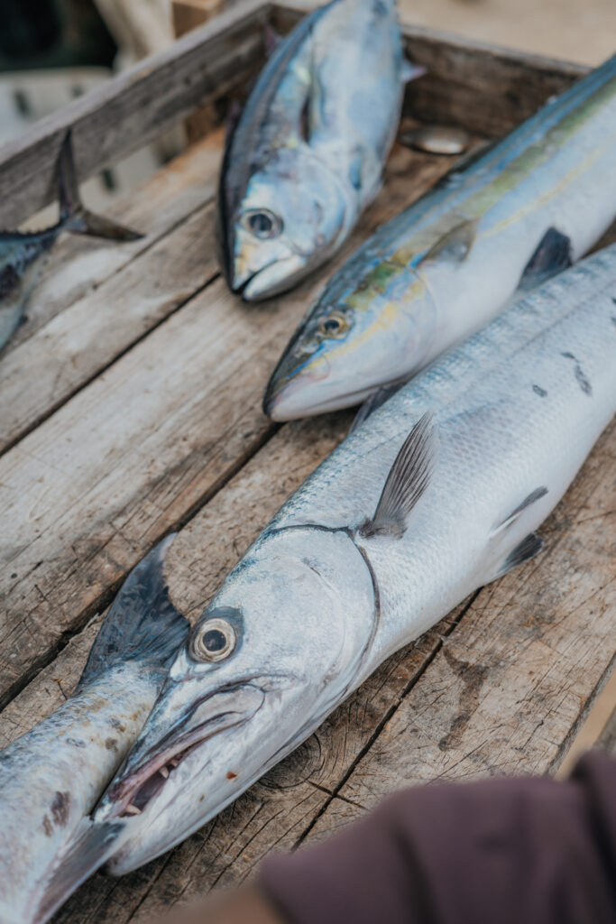 The fishing itself was a mix of trolling and a setup using rubber bands that would snap when a fish hit, which was really cool to watch. Over the course of the day, we ended up catching multiple species: blackfin tuna, rainbow runner, and a couple barracuda, and while it wasn’t non-stop action, it was more than enough to feel like we got what we came for.