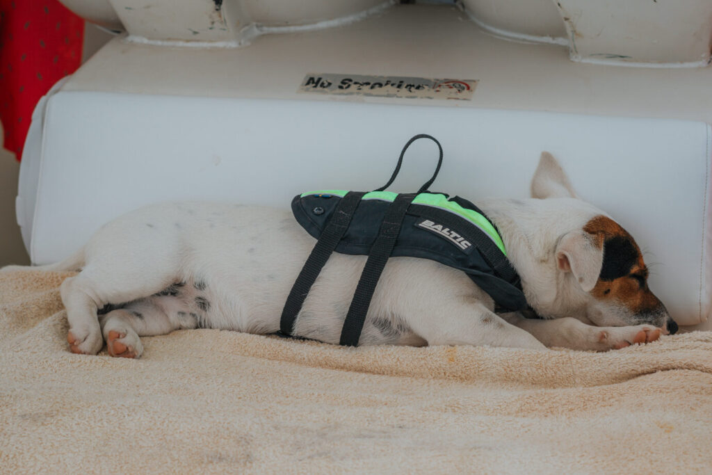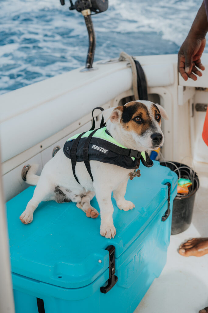 From the beginning of the trip, there were two dogs on the boat: Francesca a chihuahua and Jerry, a Jack Russell who immediately decided we were his people. Jerry was chaos in the best way. He peed on the seat I was sitting on within minutes of being on the boat, tore up deckhand gloves, barked every time a fish hit the line, and then would randomly crash out and nap like nothing had happened. He was an absolute menace, and it made the whole experience that much more memorable. I loved him.