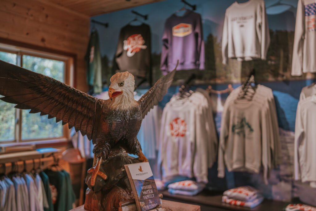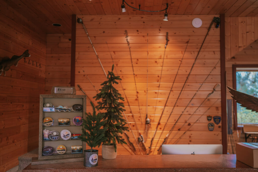 Before checking out, we stopped by the main lodge. It’s a cozy building filled with resort merch, lake maps, stickers, and that up-north spirit. It was the perfect last stop before we loaded up and headed out.