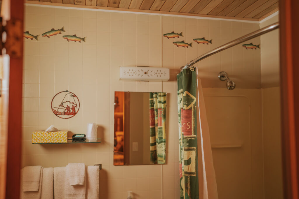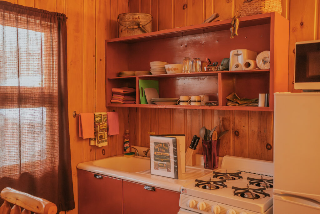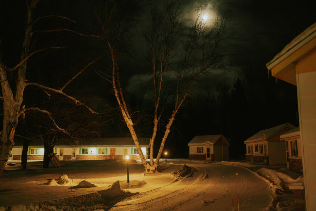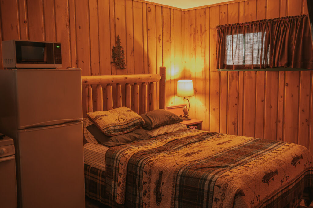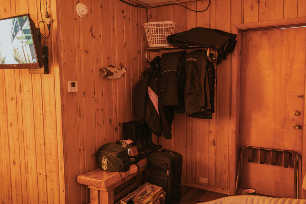 The cabins and rooms are simple, comfortable, and perfectly suited for a winter adventure basecamp. A warm bed, kitchenette, bathroom, television, alarm clock, and plenty of storage and hangers for bulky winter gear. When you’re spending your days outside snowmobiling, ice fishing, and exploring, luxury isn’t necessary. Warmth, comfort, and a place to reset matter most, and Sunshine checked every one of those boxes.