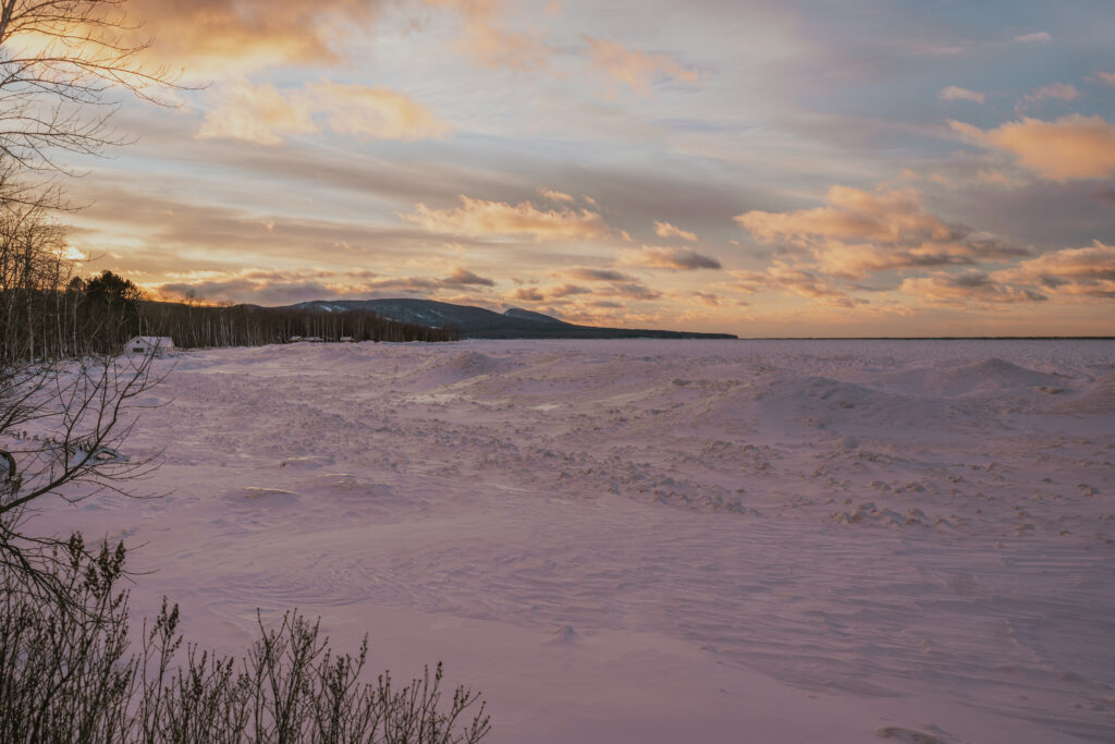Tears froze in my eyes watching that sunset. It was one of those moments that stays with you long after you leave. Snowmobiling was a major highlight of our winter adventures in the Porcupine Mountains, giving us access to places you can only reach this time of year.