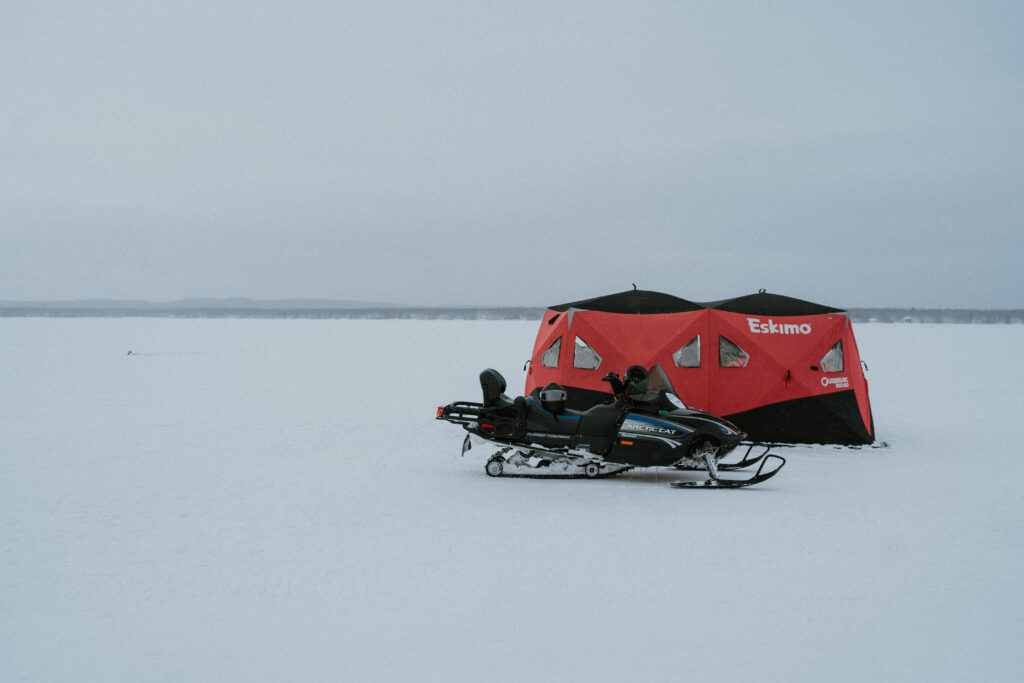 When you take a trip with Justin and his crew, everything is included. That means bait, equipment, flashers, rods, tackle, hubs, and even snowmobiles. They’ll even run to grab food for you if you want, added onto your trip fee. I can’t recommend them enough. Take the trip.