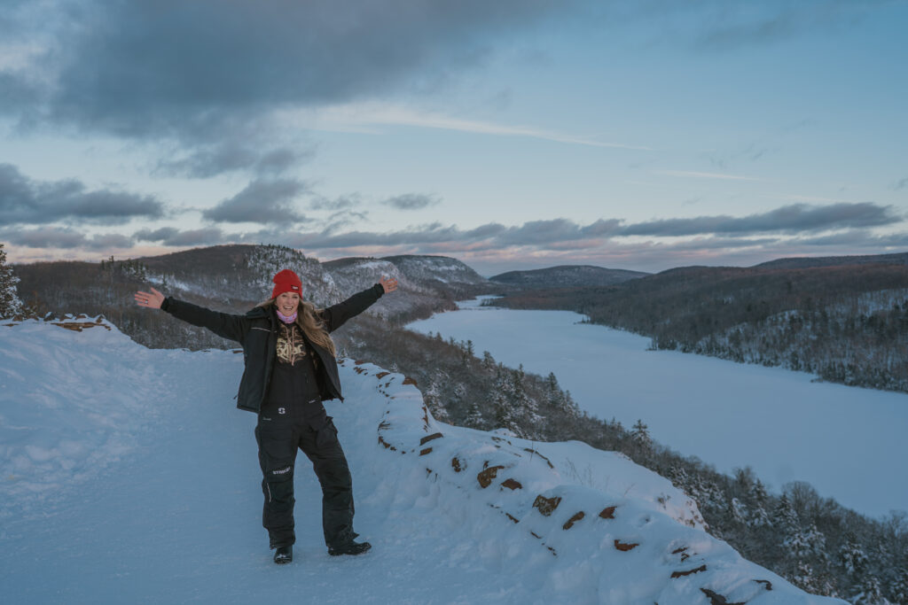 Tears froze in my eyes watching that sunset. It was one of those moments that stays with you long after you leave. Snowmobiling was a major highlight of our winter adventures in the Porcupine Mountains, giving us access to places you can only reach this time of year.